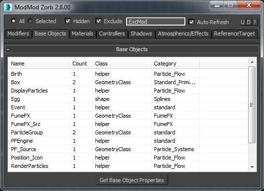 v 2.8.00 Added Exclude text field for filtering by name. Editing Refrence targets Tab now working!!! This means you can mass edit FumeFX object settings such as speed multipliers and other FumeFX and TP properties that were previously impossible to edit!